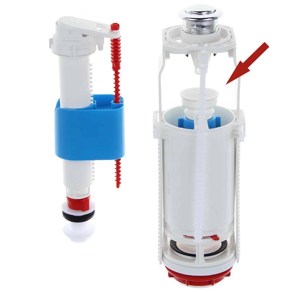 При монтаже сливной арматуры унитаза, как и в случае со сливным клапаном, на конструкцию устанавливают пластиковую шайбу для фиксации. В некоторых комплектах ее нет, но все же ее наличие значительно облегчает закручивание. Кроме того, в заливном клапане обычно есть специальный фильтр, который не рекомендуется доставать.