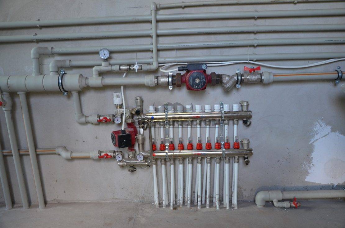 Все системы отопления с теплым полом принудительные — без насоса через такие большие контура теплоноситель не пройдет