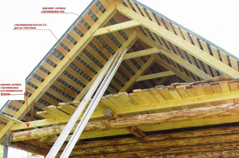 Коньковый прогон двускатной крыши из спаренных досокИсточник kostromaremont.ru