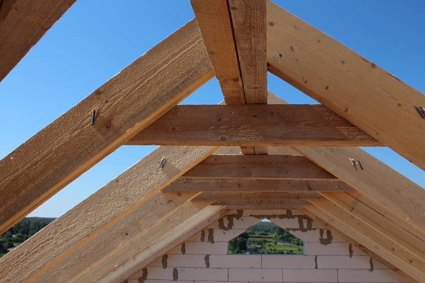 Стропила, как правило, вырезают из бруса сечением 50х100 мм или 50х150 мм. Более крупный брус (например, 100х200 мм) целесообразно использовать при сооружении утепленной кровли – для возможности установки в межстропильное пространство слоя теплоизоляции.