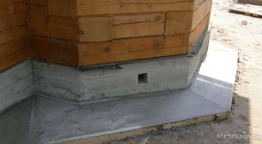 С целью предотвращения подтопления конструкции рекомендуется делать её выше на 5 см от поверхности грунта. При наличии поблизости от дома деревьев или кустарников, потребуется их выкорчевать на расстояние примерно до 1,5 м от дома.
