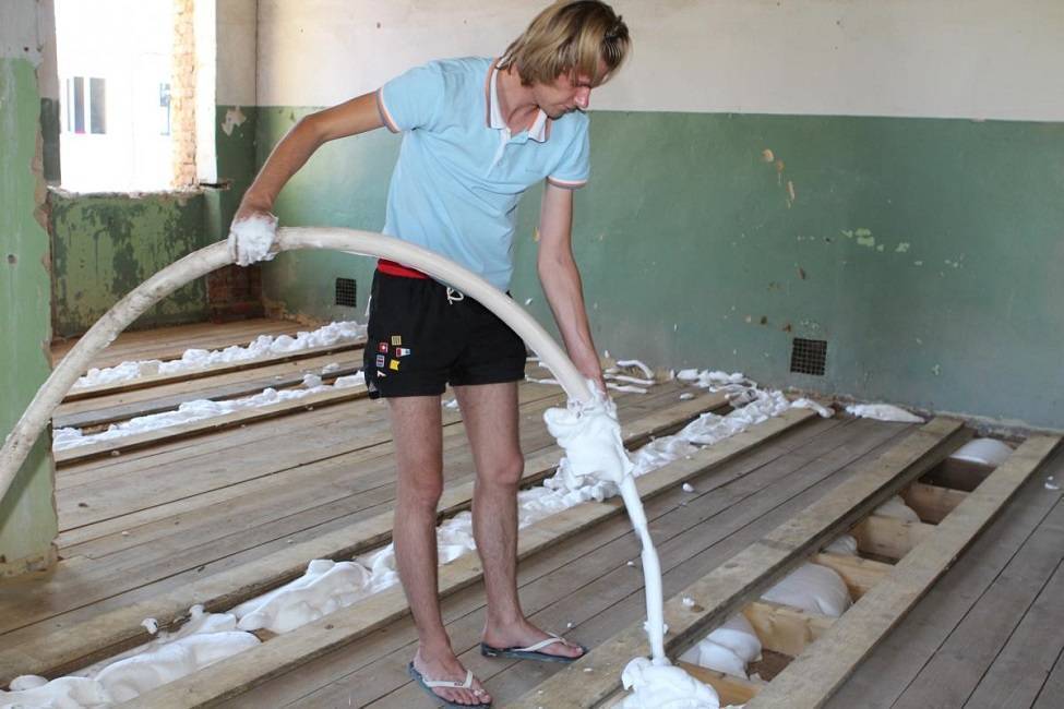 К жидким материалам относится цементная смесь с примесью керамзита или пенопласта и полимерный пеноизол.