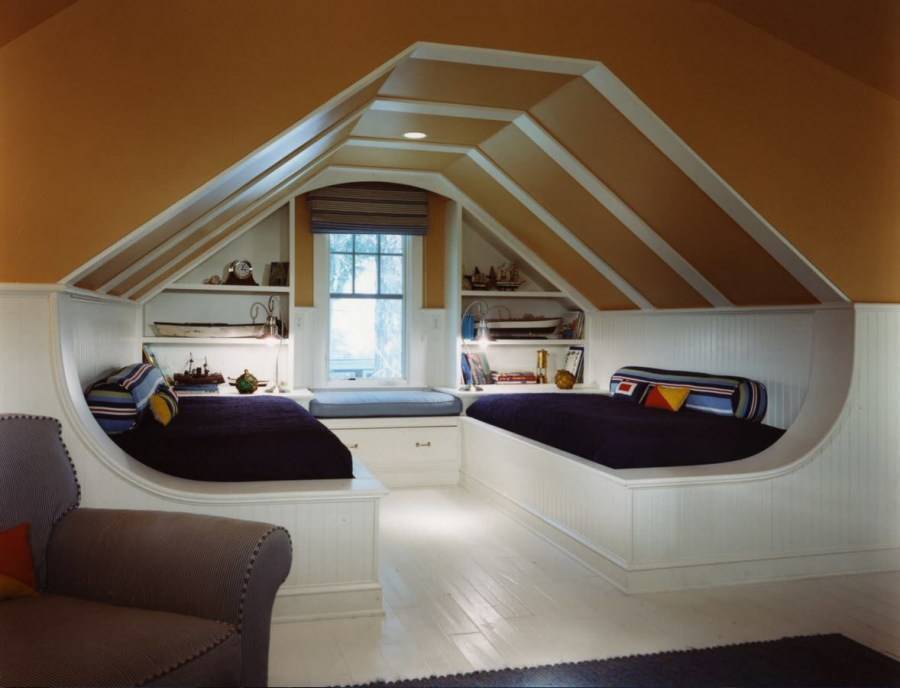 В этом случае уделите внимание проекту дома, скосы делайте не от самой нижней точки, а отступая некоторое расстояние. Таким образом, помещение максимально комфортным и функциональным будет