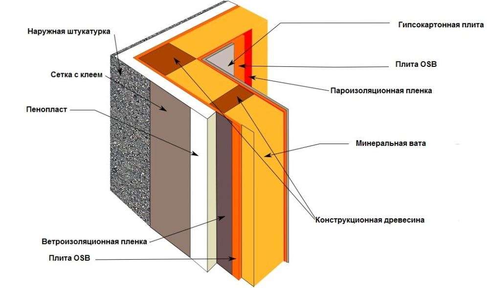 Утепление стен каркасного дома пенопластом
