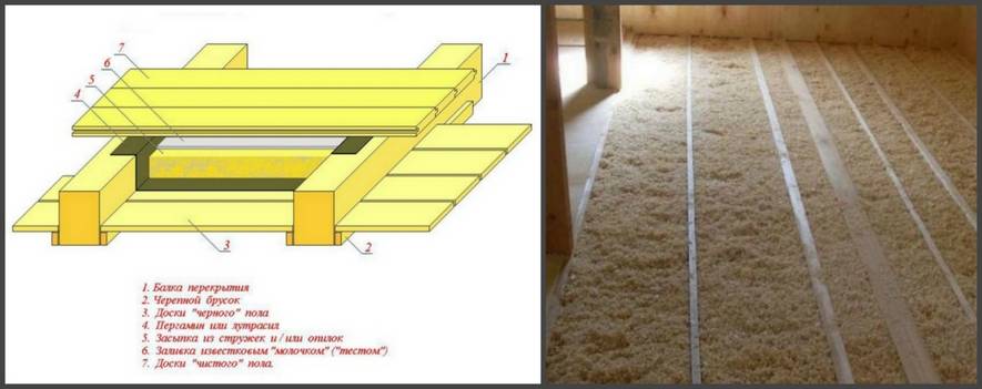 Утепление пола опилками