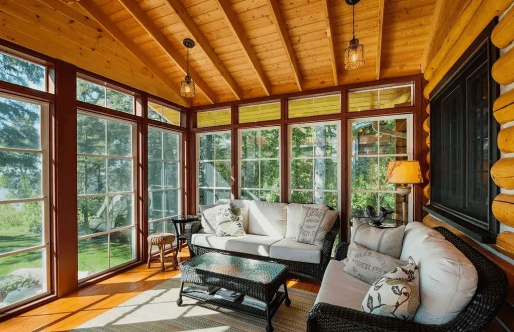 Так как пристройка представляет собой застекленное помещение, то необходимо позаботиться об окнах и дверях на веранде.