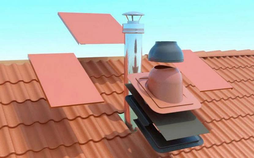 Когда монтируют верхнюю часть вентиляционной системы, то учитывают материал, из которого произведена кровля. Отталкиваясь от этого фактора, монтаж может немного отличаться между разными кровельными материала. Например, если монтируют проход вентиляции через кровлю из металлочерепицы, применяют гибкий лист для гидроизоляции этого участка. Это связано с тем, что заполнить все неровности и исключить возможность попадание влаги может только гибкий материал.