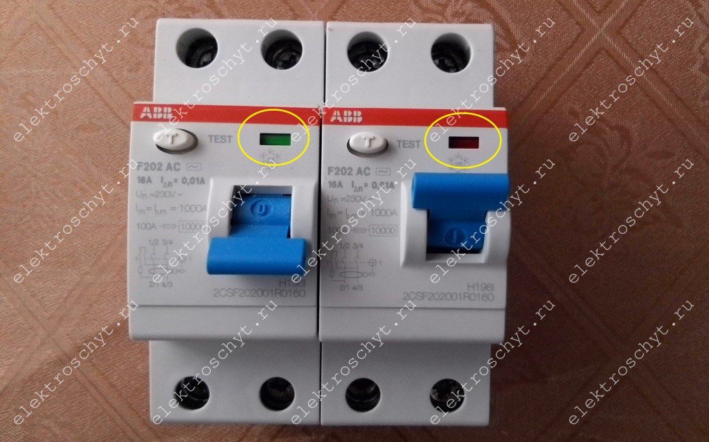Мне нравятся УЗО АББ, у которых как и у выключателей АББ серии S200, есть индикация включенного (красный цвет) или отключенного (зеленый цвет) положения.