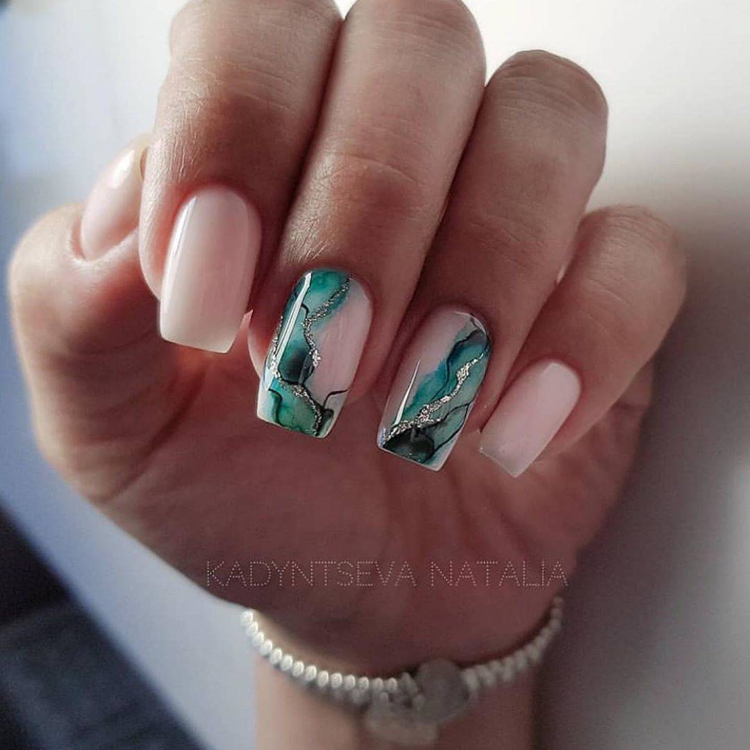 Имитирование мраморного узора на ноготках – это прекрасная возможность создать элегантный и неповторимый маникюр, который может выполняться в нейтральных природных оттенках или насыщенных глубоких тонах. Главное правило – сам узор должен быть светлее или темнее основного покрытия, и тогда, эффект природного рисунка вам гарантирован. Красиво смотрится мраморный принт, выполненный блестящими лаками, узоры, украшенные ненавязчивым декором и комбинирование нескольких техник, например, на акцентных пальчиках выполняется мраморный маникюр, а остальные ноготочки оформляются френчем или однотонным дизайном.