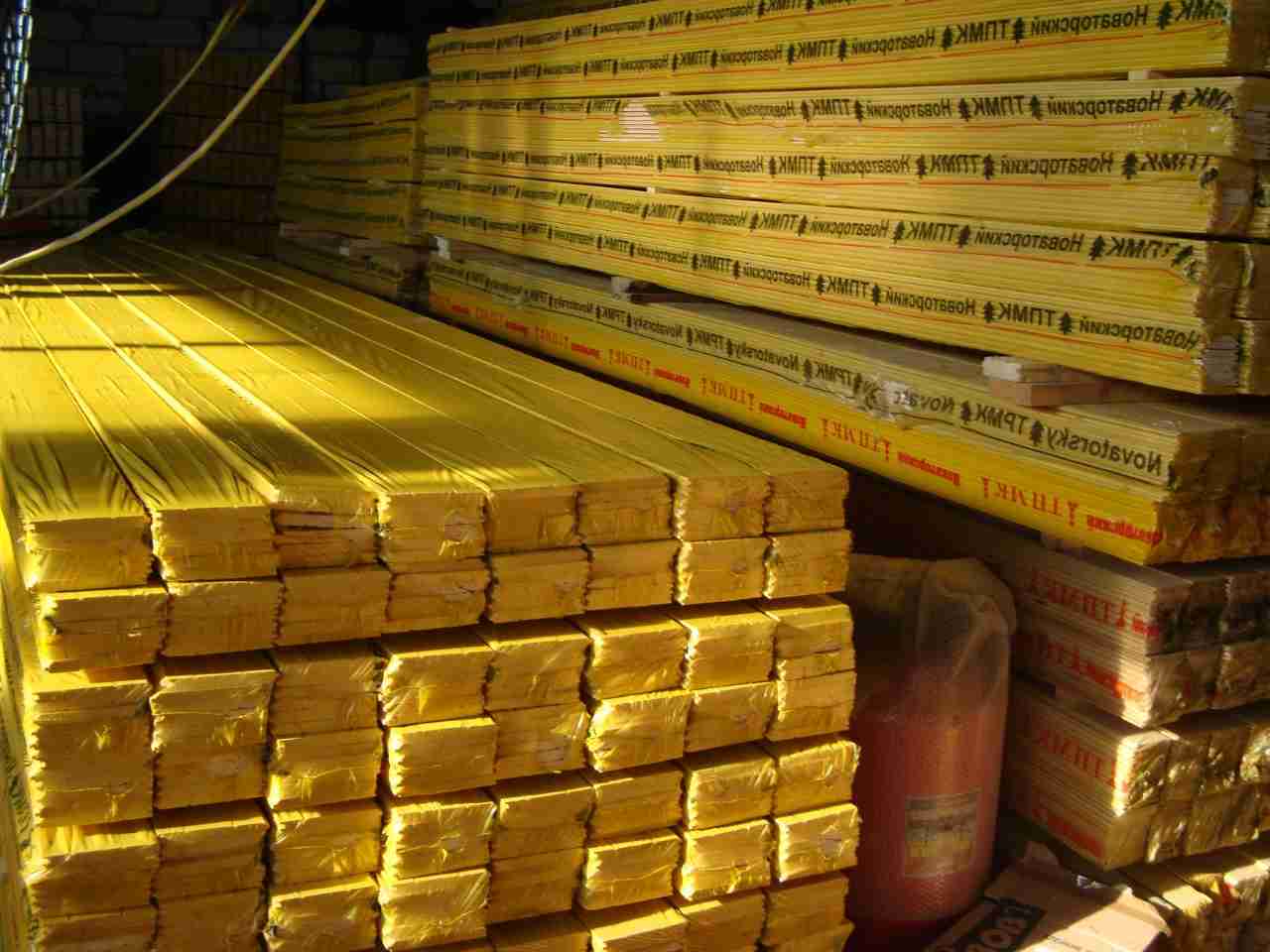 Вагонка сложена ровными штабелями