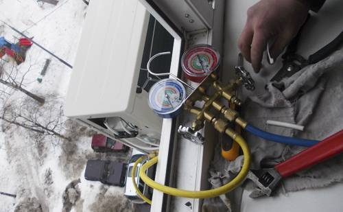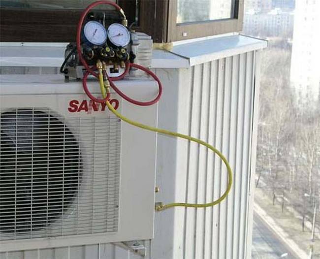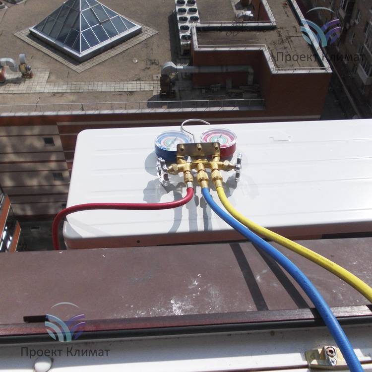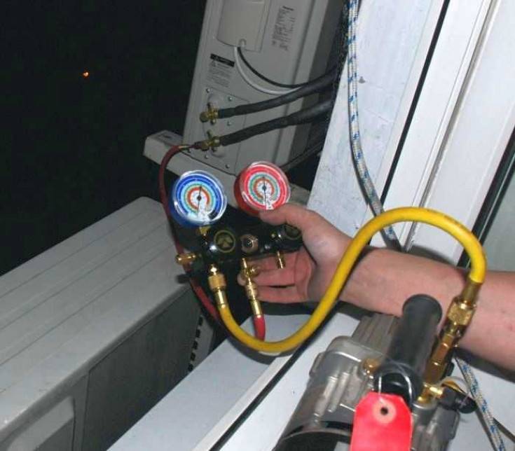 - Отключают насосное оборудование, при необходимости выполняют заправку кондиционера хладагентом из баллона.