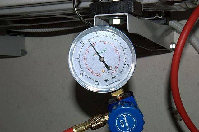 Вакуумный насос и откачивает влагу и воздух, оставшийся в системе после монтажа. Это может длиться от 10 до 30 минут, в зависимости от мощности устройства. Сигналом завершения процедуры будет опускание стрелки измерительного прибора до отрицательного значения, которое означает остаточное давление.