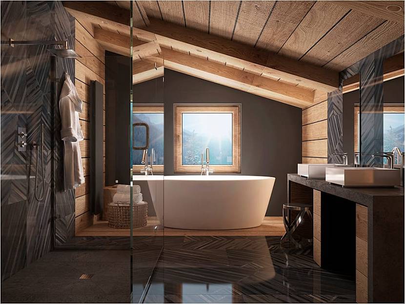 - если в ванной не используется дополнительная отделка стен и потолка, древесину нужно обязательно покрыть защитным слоем: морилка, воск;