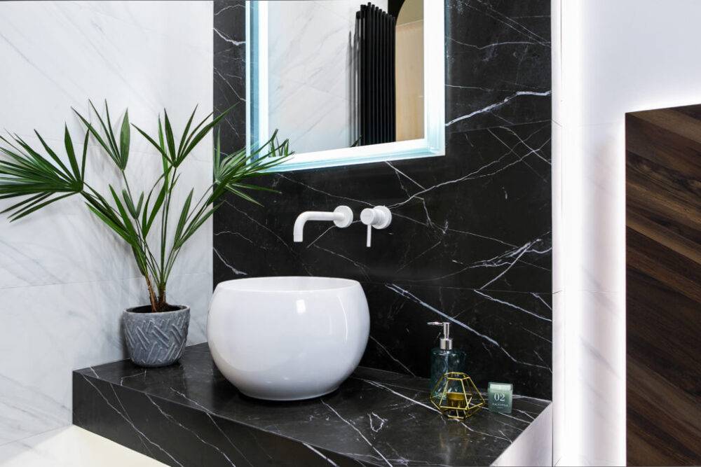 Тенденция использования натурального сырья также заметна в случае предметов сантехники, таких как умывальники, а также ванны. Большинство производителей в своих предложениях на 2020-2021 год представляют минималистичные, простые по форме модели из натурального камня или его имитации.