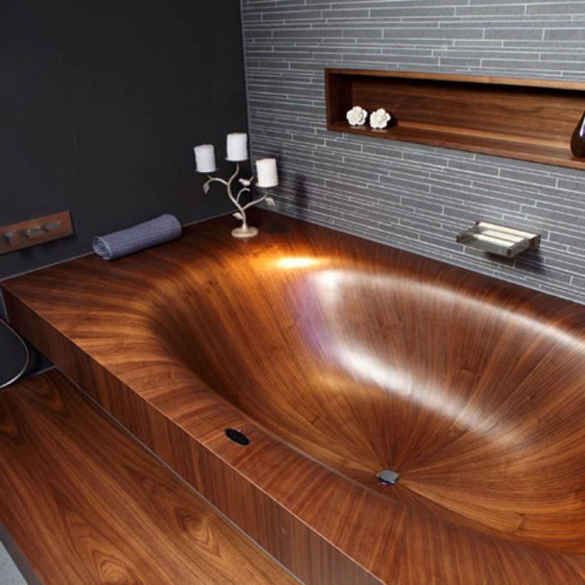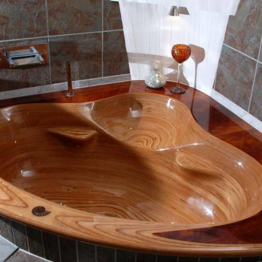 Дизайн ванной комнаты, фото которого приведены в этой статье, это возможность реализовать самые необычные идеи, поскольку дерево является достаточно пластичным материалом, а современные методы его обработки и удлинения срока службы позволяют ванную делать совершенно любой.