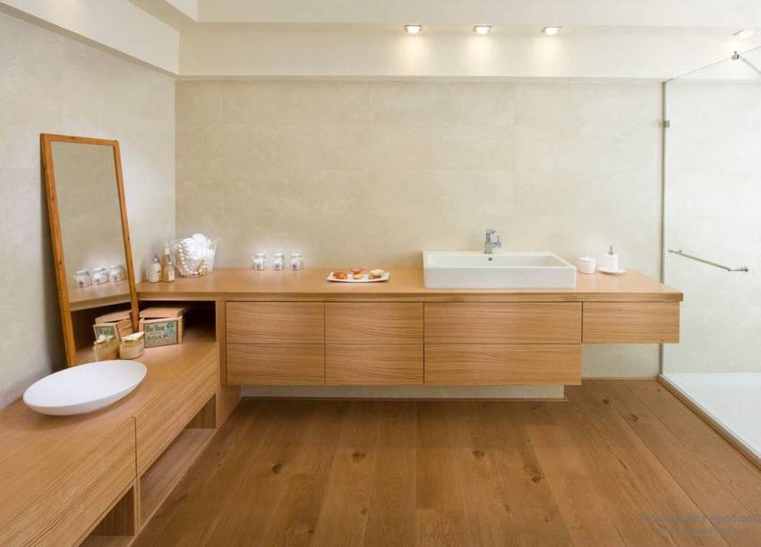 В процессе принятия ванны и душа расплескивание воды неизбежно. Деревянный пол без специальной защиты постоянно будет впитывать влагу, разбухать и гнить.