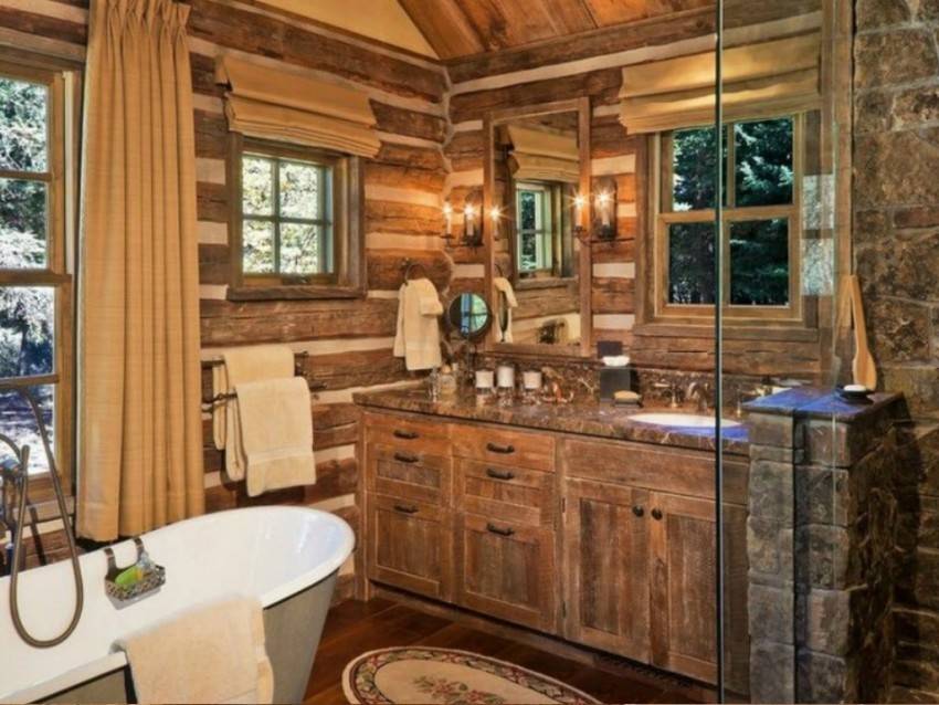 Оформлять ванную в деревянном доме можно различными способами, при этом важно, чтобы все предметы интерьера гармонировали между собой. На выбор проекта также влияет размер комнаты и финансовое положение владельца дома