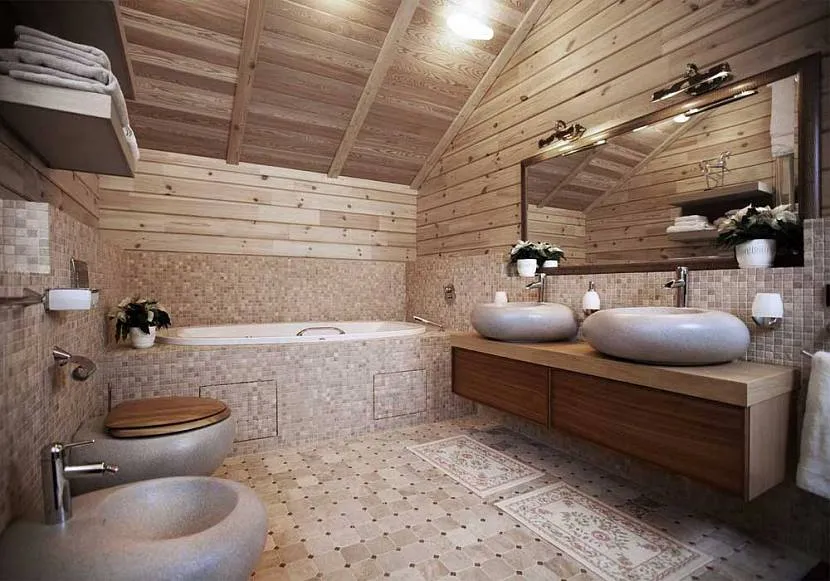 Ванная в деревянном доме – это помещение, где гидроизолированы все конструкции. Соответственно, стены и потолок не «дышат», и это ухудшает микроклимат в помещении, способствует конденсации влаги на поверхностях отделки.