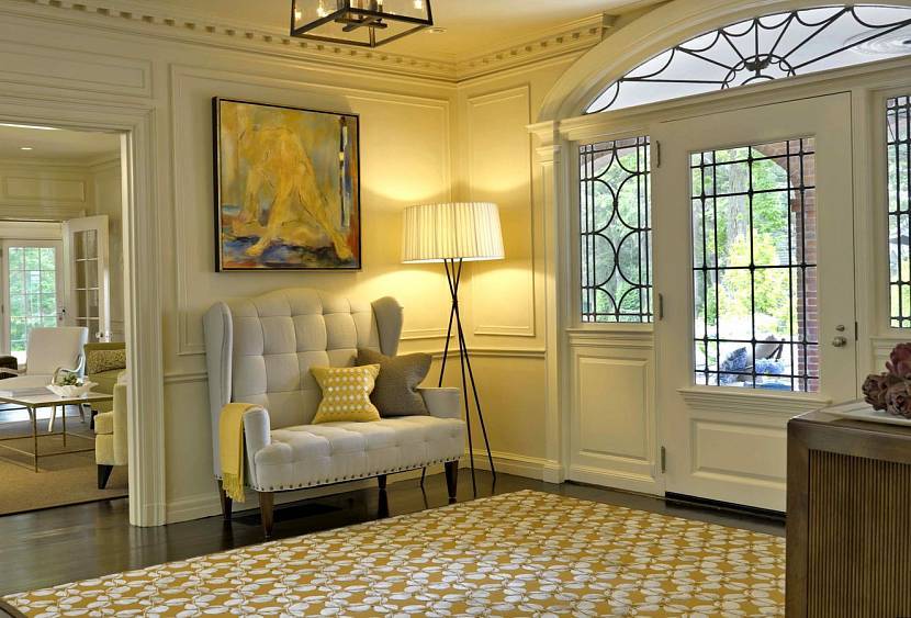 А чтобы цветовая палитра в гостиной, спальной комнате, детской, холле, ванной и санузле была оригинальной, могут использоваться «размытые» дымчатые оттенки. Это и пурпурно-золотистые, и фиолетовые, растворяющиеся в голубом, и даже хаки. Цитирование стиля ар-деко подчеркивает контрастность цветов. Так, темные полы «играют» со стенами, окрашенными в светлый цвет, а темные стены гармонируют со светлыми дверями и рамами окон. И мебель, и технику обычно стараются брать в одной цветовой гамме.