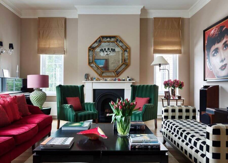 Чтобы сделать комнату уютной, в английском стиле используют 3-4 основных оттенка. Они могут быть яркими или приглушенными. Чаще всего можно встретить такие сочетания: