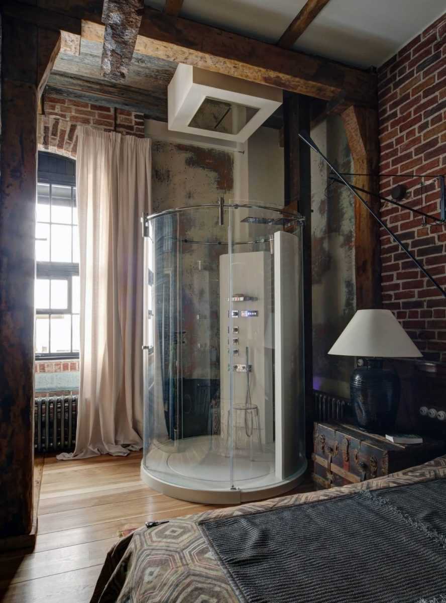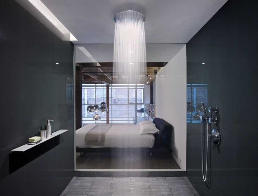 Если появилось желание поставить ванну в спальне малогабаритной квартиры, а все доводы насчет тесноты не действуют, то выходом из данного положения станет вертикальная душевая кабина. Она же может быть рассмотрена как неплохой альтернативный вариант для просторных спален.