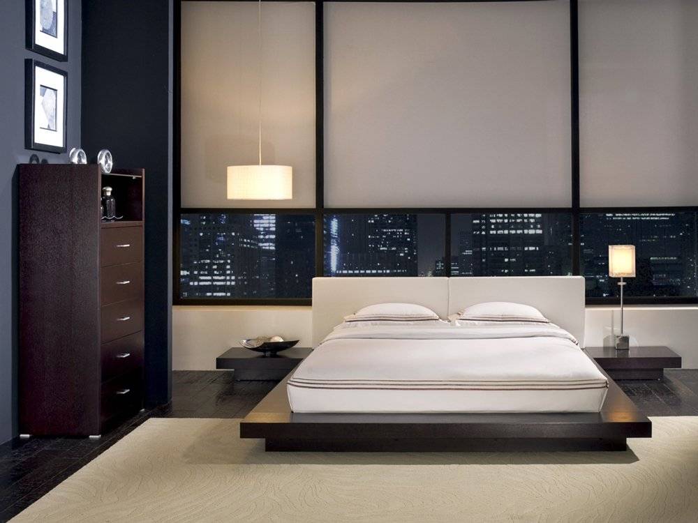 Традиционный минимализм без этнических элементов – отличное предложение для одинокого мужчины. Подобный дизайн спальни в частном доме не требует декора или аксессуаров. При желании одним акцентом можно подчеркнуть увлечение рыбалкой или охотой. А в комнате спортсмена будет уместна полка с кубками или небольшая витрина медалей или других наград плюс уголок со шведской стенкой и велотренажером.