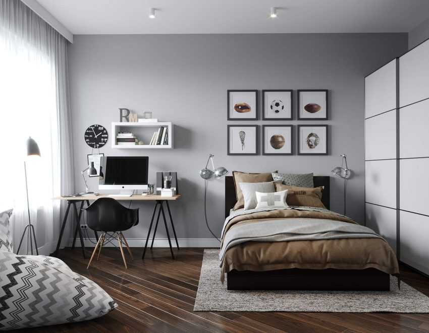 Креативный интерьер спальни юноши в загородном доме может совмещать в себе несколько функций. Это не только личное пространство, но и гостиная для друзей, разделяющих общие интересы. Концепция футбольного фаната, к примеру, отлично подойдет для просторной комнаты. А вот маленькая спальня молодого человека из городской среды может вмещать, помимо диван-кровати, только компактный компьютерный стол.