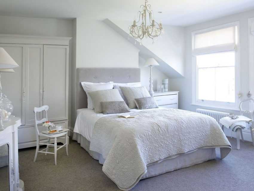Мечтательным девушкам отлично подойдет романтический стиль, шебби-шик или бохо. Эти стилистики можно сочетать с прованскими чертами или классикой, как на фото дизайна спальни в доме с мансардой.