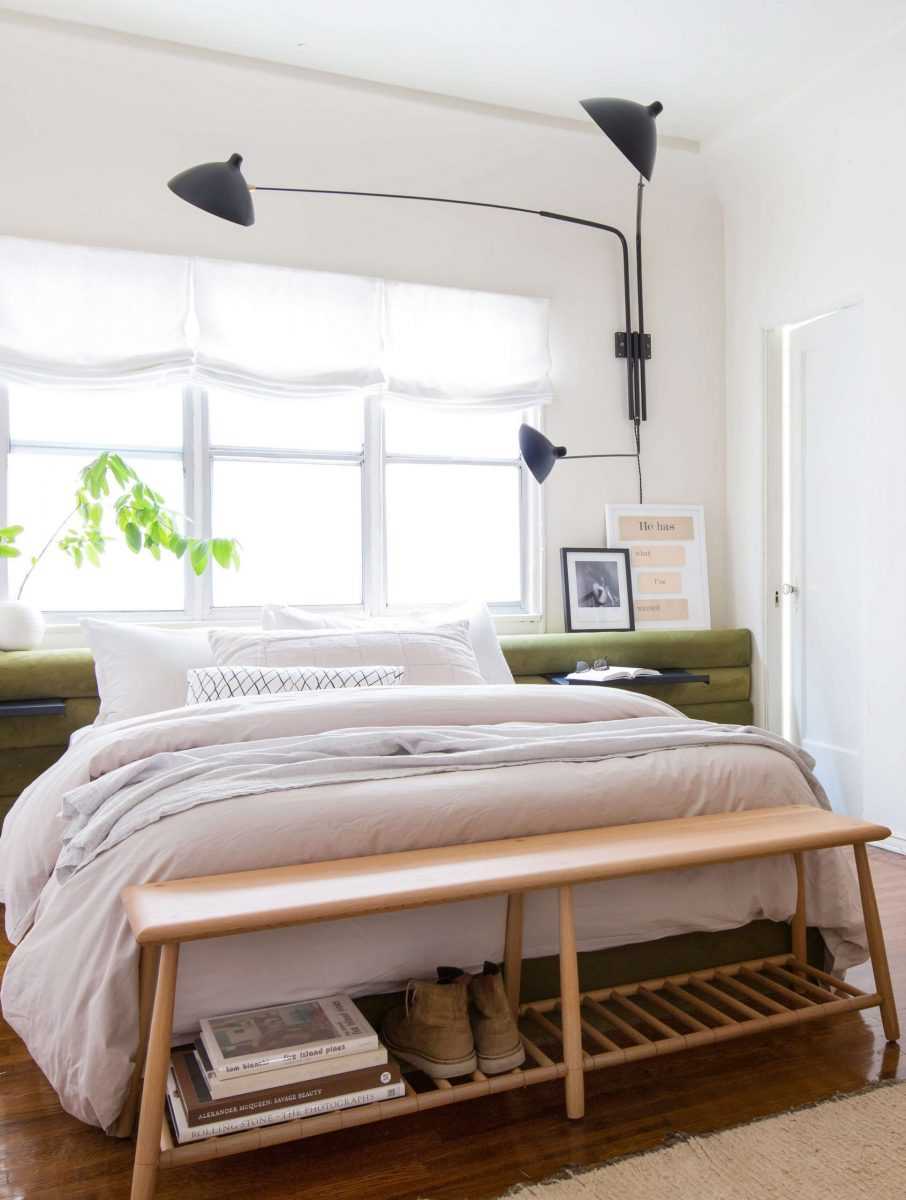 - Ничего лишнего – достаточно пары полок для книг и мелочей или встроенный стеллаж.