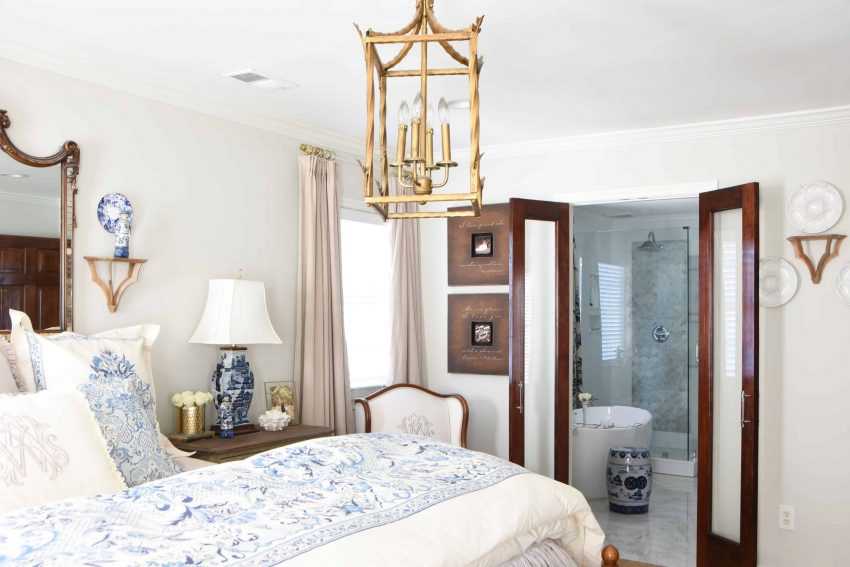 - В спальне не стоит устанавливать люстру больших размеров, особенно если это красивая маленькая спальня. Даже такой незначительный промах может изрядно испортить общее впечатление от спальной комнаты.