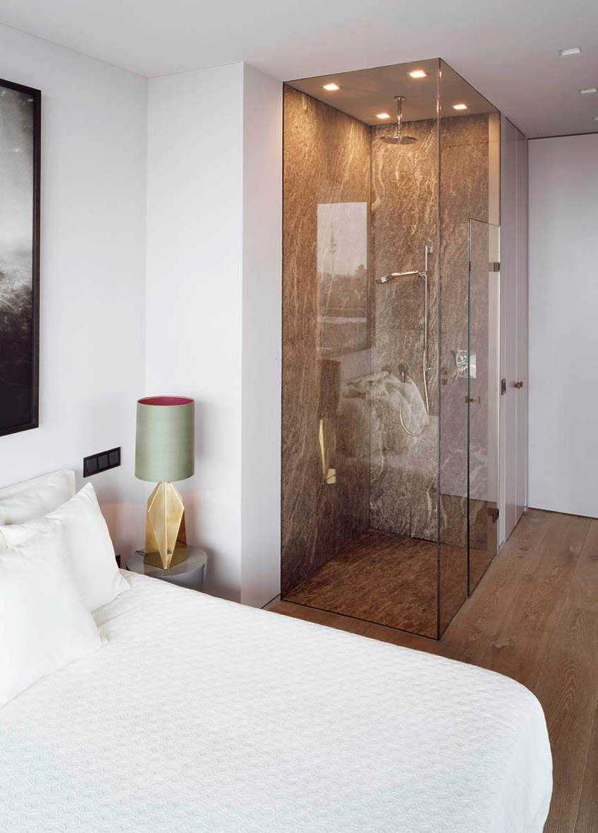 Однако сегодня эта модель мышления уступает место новой, предлагающей реализовать проект спальни с санузлом, в том числе для всех гостевых комнат. Воплощение данной идеи в жизнь позволит хозяевам квартиры и гостям купаться тогда, когда им захочется, а не когда наконец освободится общий санузел.