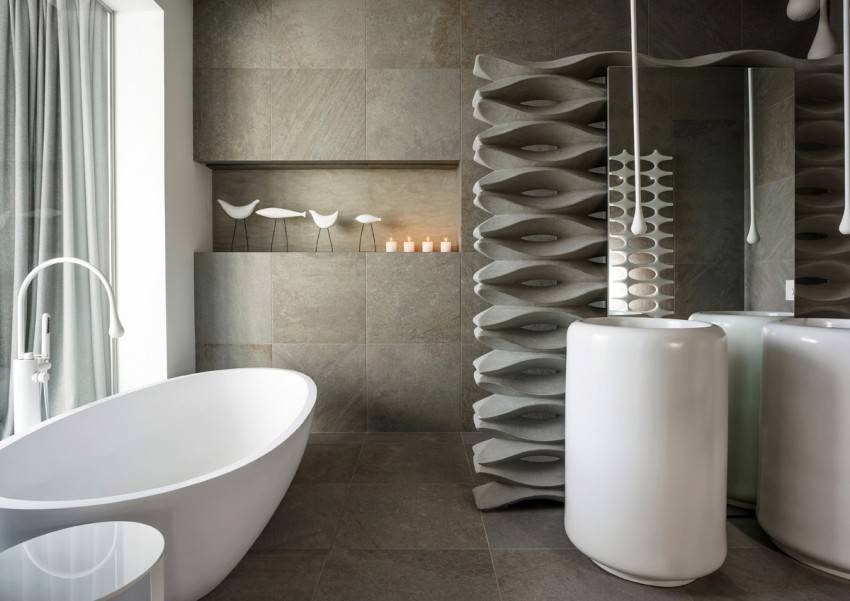Варианты дизайна ванной в современном стиле ограничиваются лишь вашей фантазией и материальными возможностями.