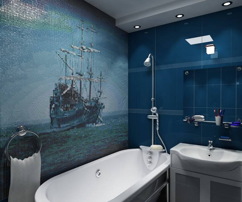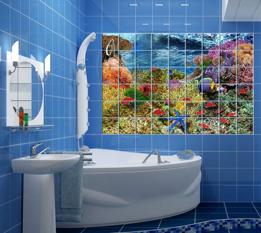С такими рисунками можно найти готовую плитку или другие материалы для ремонта в ванной, а можно приобрести специальные водостойкие наклейки.