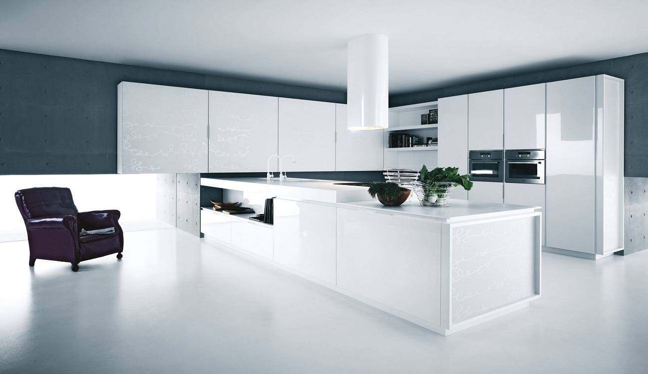 Белый цвет является самым популярным для изготовления элементов кухонной мебели. Он одинаково хорошо смотрится в любом стиле исполнения кухни. Хромированная и никелевая фурнитура, стеклянные поверхности и отделка деревом выгодно оттеняют белый сверкающий глянец.