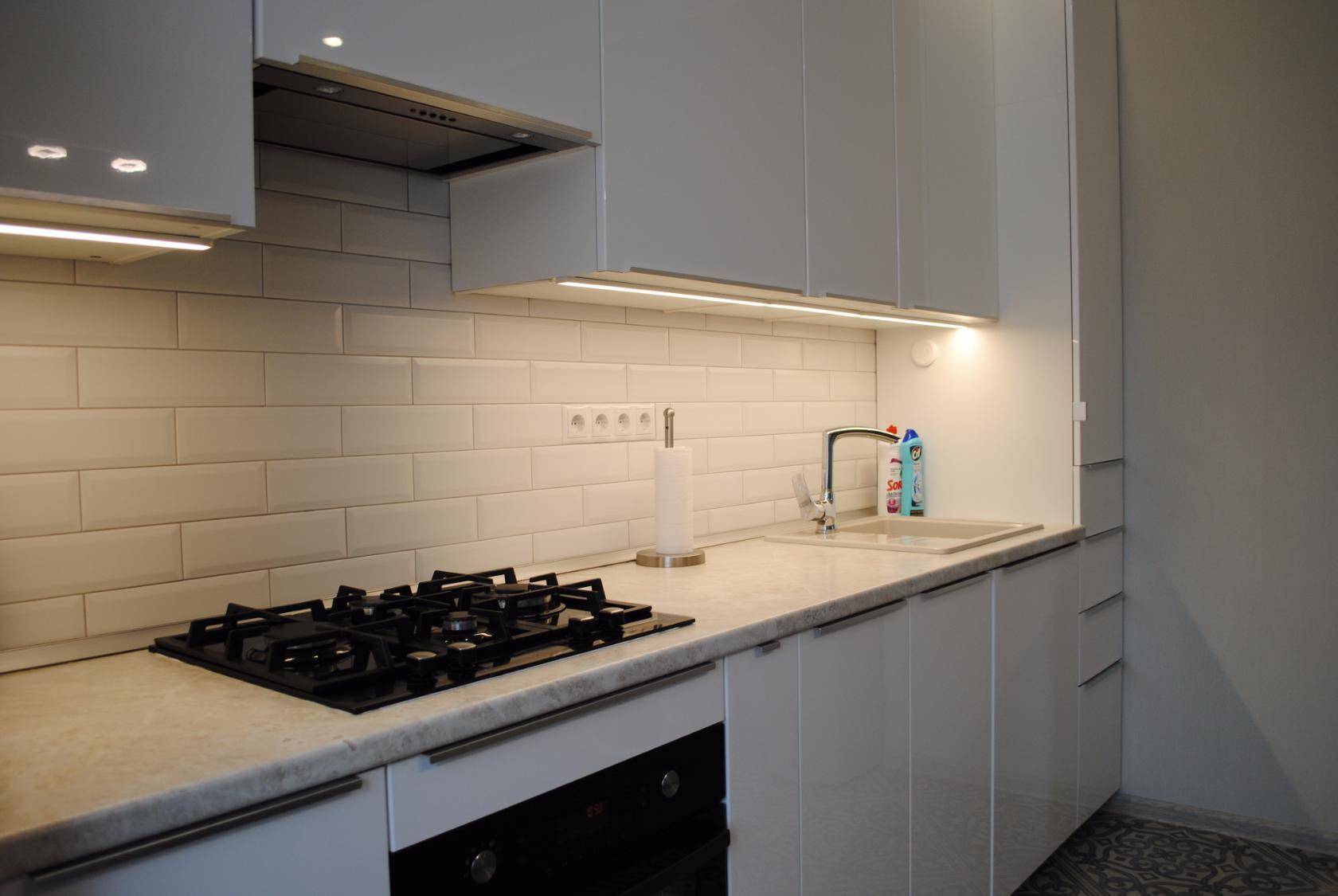 - Прямая кухня всегда выглядит аккуратно и компактно, она занимает в квартире меньше места и кажется при этом более просторной;