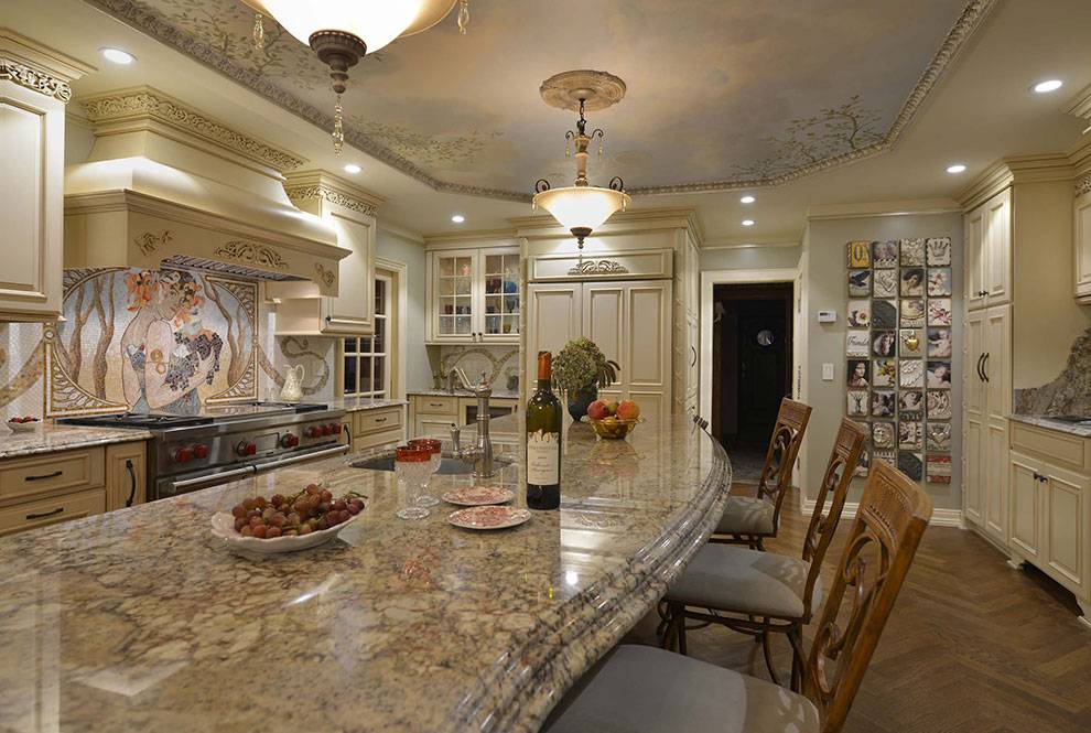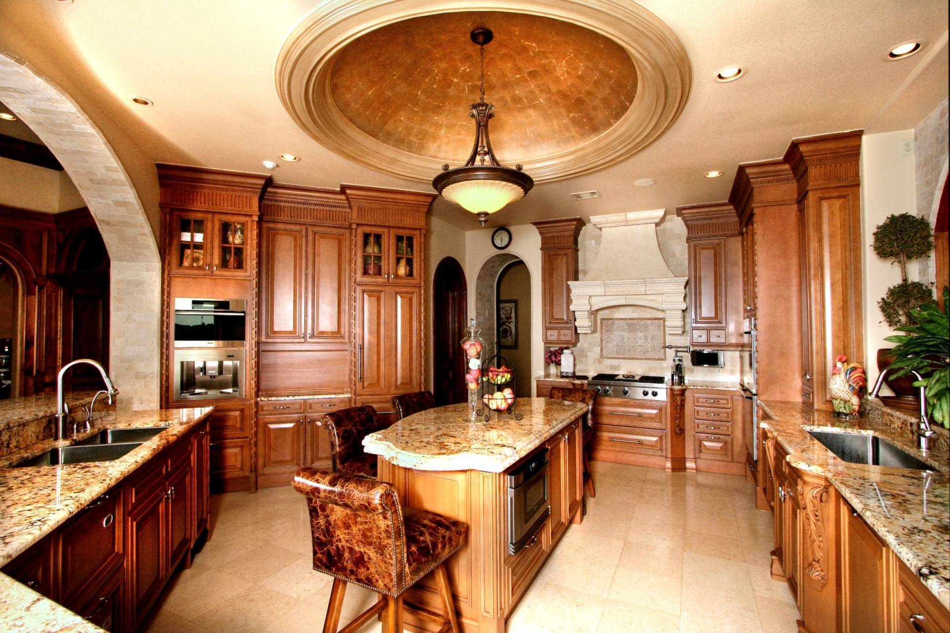 Классический интерьер в оформлении кухни чаще можно встретить в загородном доме, чем в обычной городской квартире. Ему свойственны монументальность, обилие декора, использование в интерьере резной мебели из натурального дерева, дорогого текстиля и богатого освещения. Этот стиль статусный и дорогой, поскольку для его воплощения требуется тщательная подготовка помещения и соответствующее оформление стен, пола, потолка, дверных и оконных проемов.