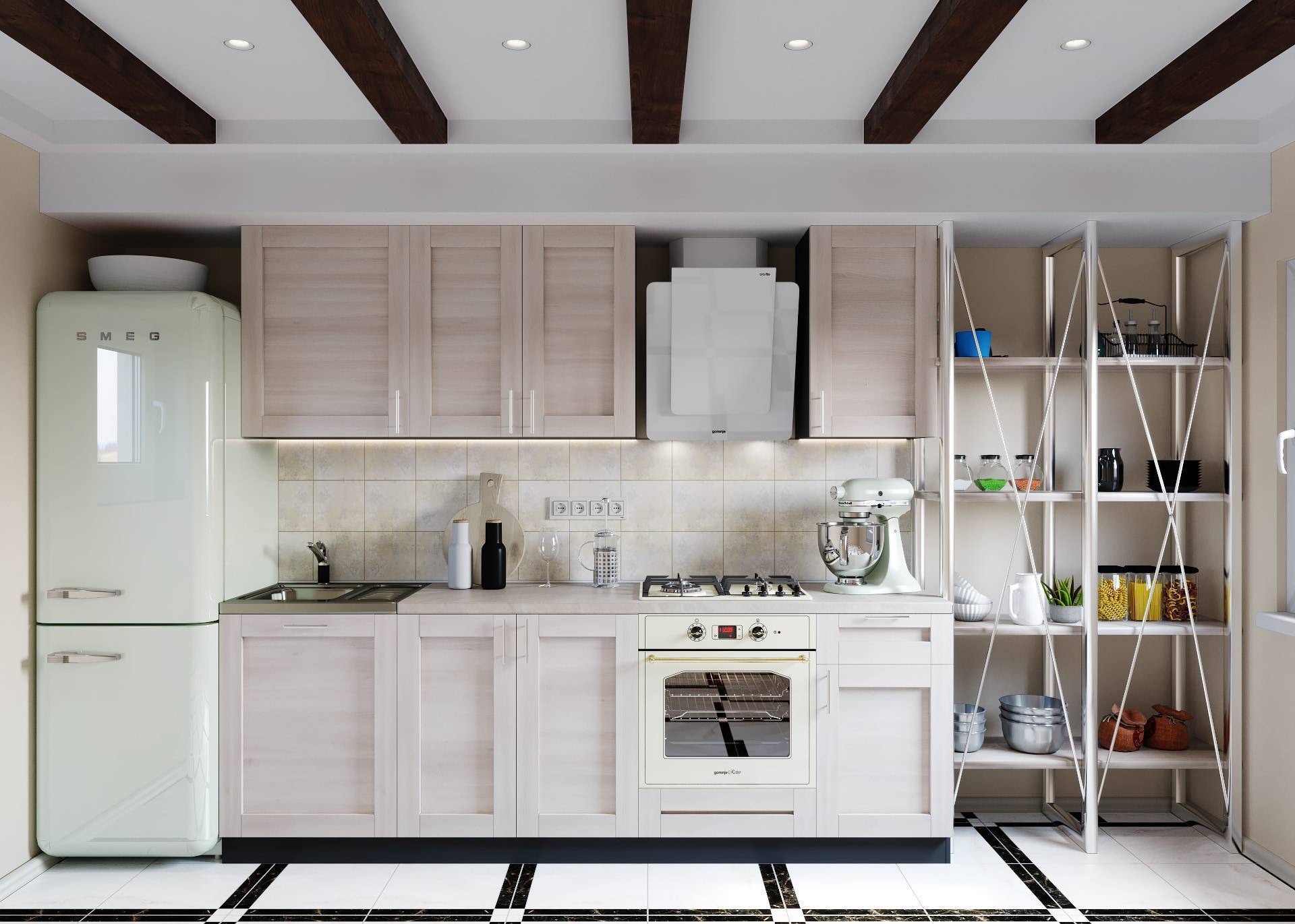- Прямая кухня будет одинаково хорошо смотреться в любом интерьере — и в малогабаритной квартире-студии, и в просторном коттедже;