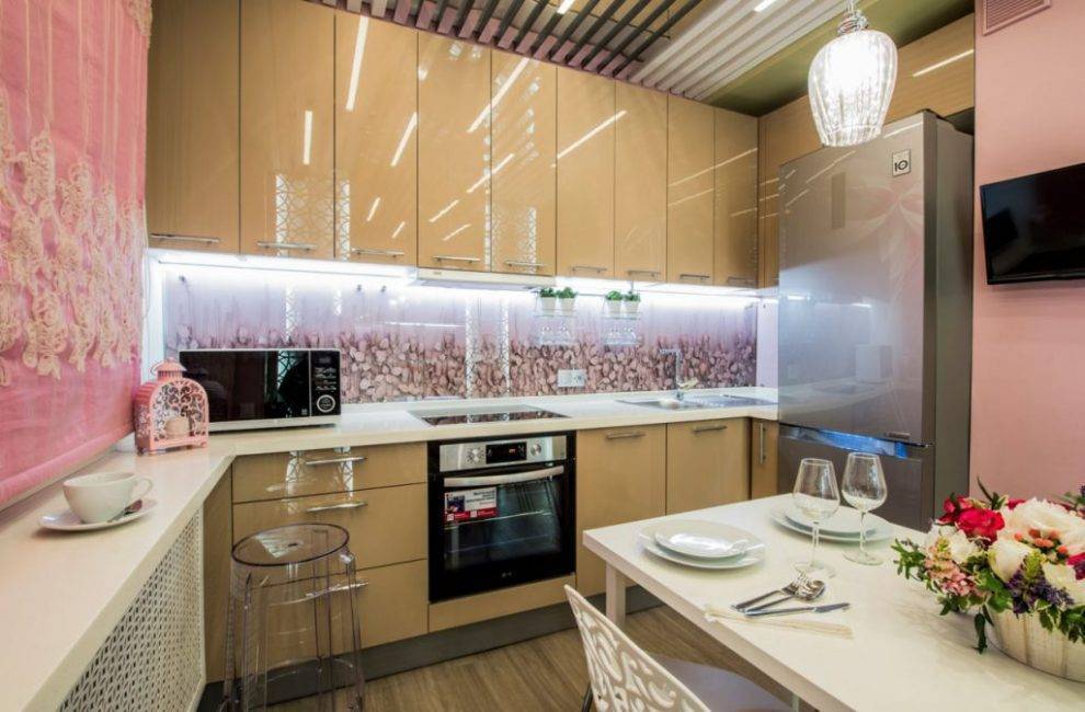 Выбирая красивый фартук между кухонными шкафчиками, можно предусмотреть и подсветку, которая сделает выполнение рутинных обязанностей приятнее и удобнее.