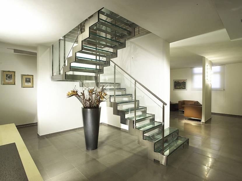 Пример визуального восприятия стеклянной лестницы Источник floatech.ru К недостаткам стеклянных лестниц в интерьере частного дома относится: