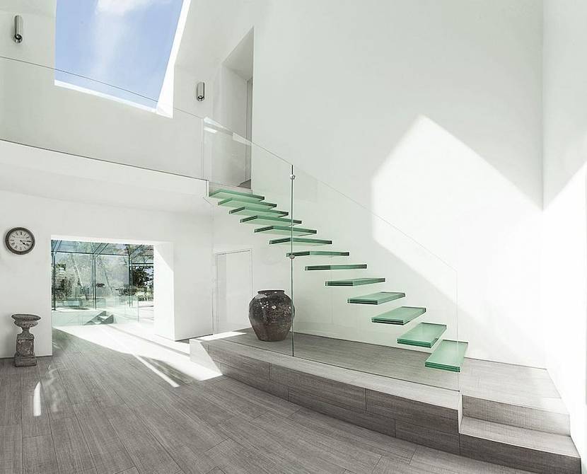 Стеклянная лестница в интерьере Источник lestnitsygid.ru