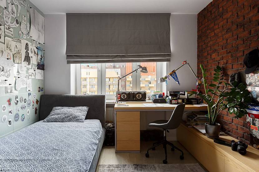 Спальня подростка делится на рабочий и спальный сегмент, а вместо игрового участка появляется зона для отдыха, где можно будет проводить время с друзьями.