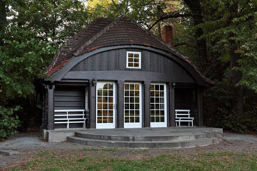 Отдельно стоящее сооружение в тихом уголке участка. Стены в постройке отсутствуют, их роль играет несколько опор. Между опорами допустимо закрепить деревянные панели или посадить вьющиеся растения. Это поможет защитить отдыхающих от непогоды и насекомых.
