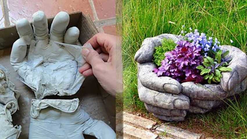 Создать подобный вазон можно, если наполнить раствором латексные перчатки и придать им нужную форму до застывания.