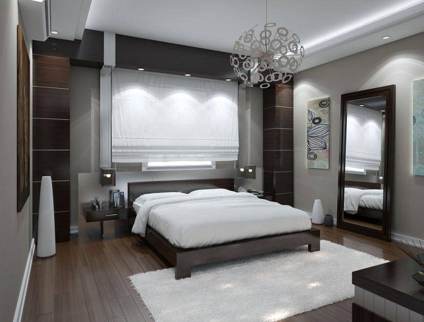 В качестве отделочных материалов стоит обратить внимание на краску, декоративную штукатурку, гипс, деревянные и стеклянные панели, обои на шелковой или флизелиновой основе. При этом предметы мебели и аксессуары должны отличаться прямыми линиями и лаконизмом, свойственными современному стилю