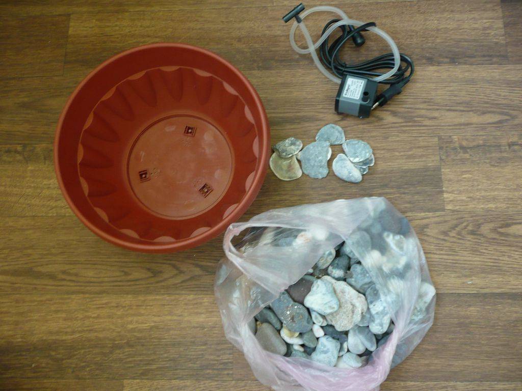 В самом простом варианте для изготовления небольшого по размерам фонтана необходима некоторая герметичная емкость и погружной насос. Емкость можно приспособить любую — специальную пластиковую для пруда, бочку, старую ванну, тазик, обрезанную шину, застеленную пленкой и т.д. С насосами несколько сложнее.