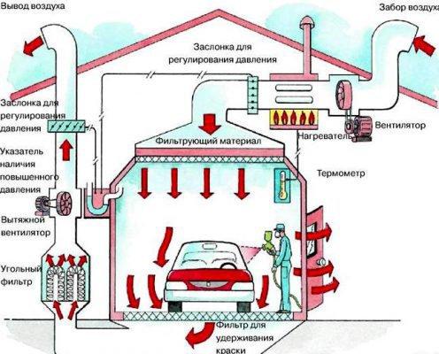 Виды вентиляции в гараже для покраски авто