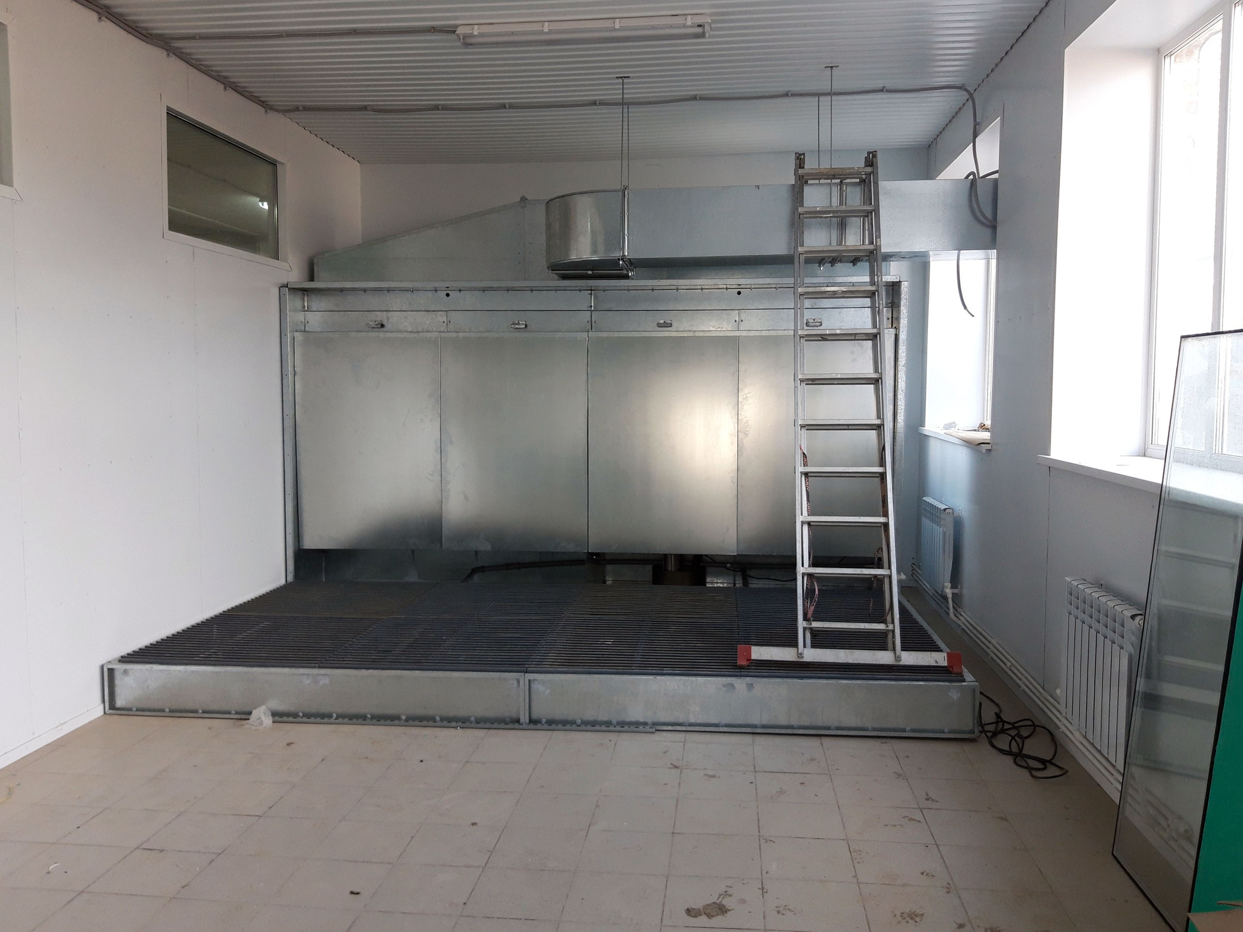 Главное требование к полу в покрасочной камере — наличие необходимого расстояния для обустройства вентиляции и отвода грязного воздуха.