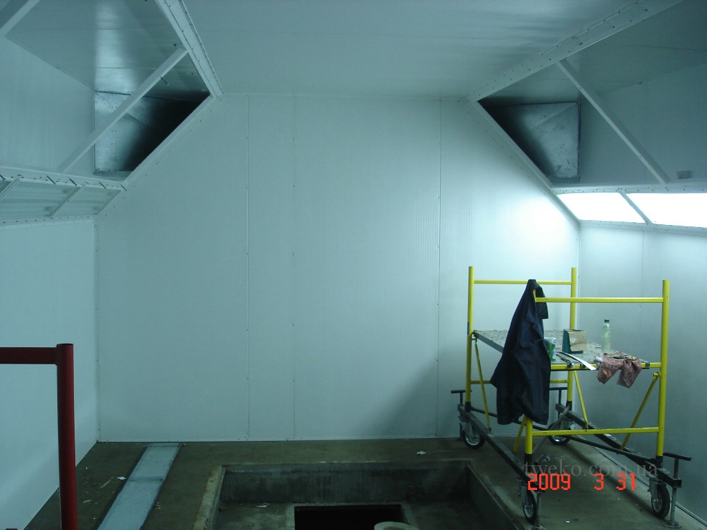 Помещение должно оборудоваться герметичной дверью. Для окрашивания стен берется белая порошковая краска. У нее достаточно долгий срок службы и она устойчива к внешним воздействиям.