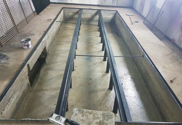 При создании покрасочной камеры своими руками отдельные требования предъявляются к обустройству полового покрытия. Для начала в полу делается траншея, после чего сверху кладется металлическая решетка.
