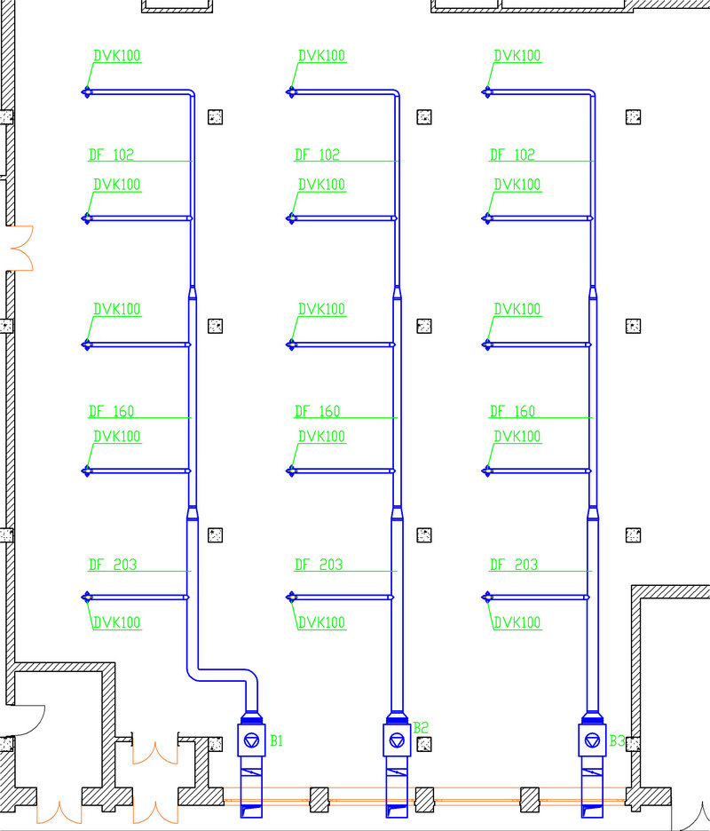 Приблизительно так выглядит спроектированная система вентиляции здания